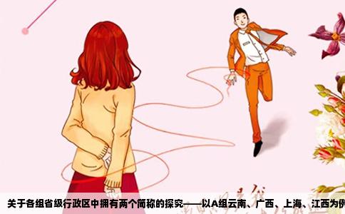 在中国的省级行政区中,有一些地区因为历史、地理、文化等多方面原因,拥有着独特的简称。其中,A组中的云南、广西、上海、江西四个省级行政区尤为特殊,它们中有两个省份拥有两个简称。下面,我们将对这一现象进行详细探究。 A组中的四个省级行政区,分别是云南、广西、上海、江西。其中,云南和广西两个省份的确拥有...