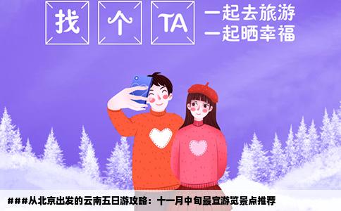 十一月中旬的北京已经带有些许秋意,而此时的云南更是如诗如画,天高云淡。计划一次五日游云南的行程,可以选择游览几个最典型的旅游景点,深入感受云南的风情万种。以下推荐的旅游线路将让你不虚此行。